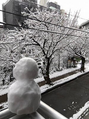 ビル前にも誰かが造った雪だるま?が既にあり、可愛らしくエントランス前でお出迎えしてくれています。