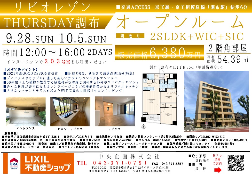 リビオレゾンTHURSDAY調布★オープンルーム開催【オープンルーム開催】9月28日(日)・10月5日(日)2DAYS★リビオレゾンTHURSDAY調布【2025-09-19更新】売買 | LIXIL不動産ショップ多摩センター店 中央企画