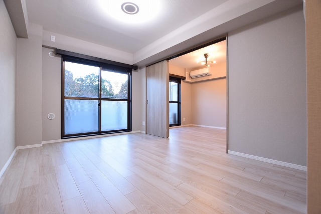 ◎洋室6畳南側壁面に、目線より少し上の3連の小窓を新設。リビングへ抜け感と眺望の良さが魅力です。