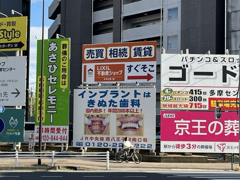 多摩八王子界隈(いまや全国区?)で有名な「きぬた歯科」さんの看板の真上となります