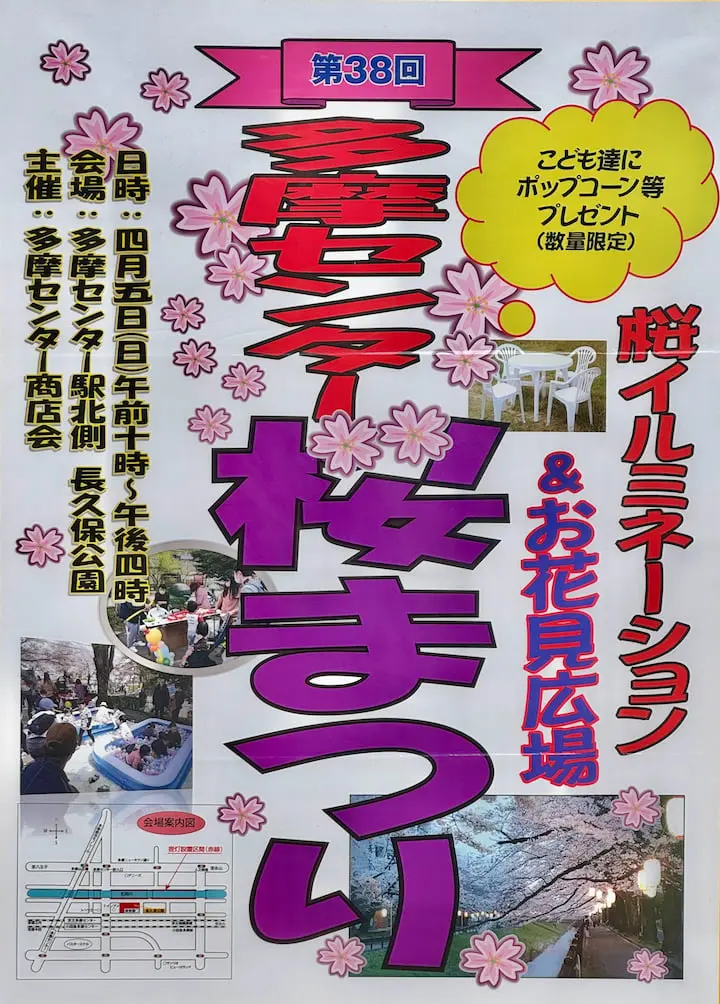 小田急・京王「多摩センター駅」北側にある長久保公園で、「第38回多摩センター桜まつり」が2026年4月5日(日)に開催されます。