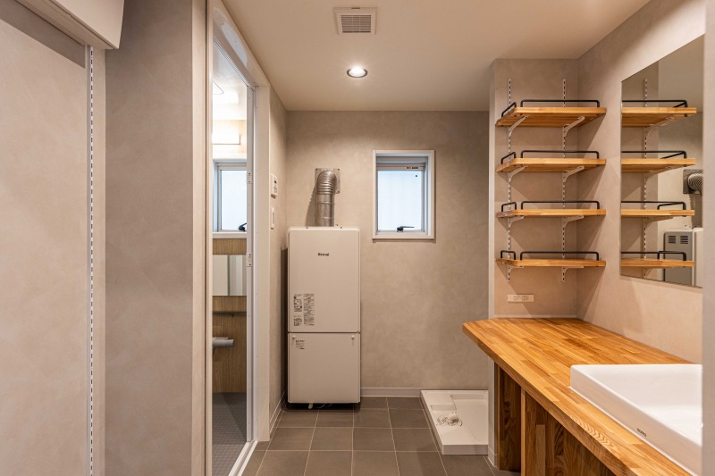 ◎約4.18帖のユーティリティスペースは玄関から土足で出入りできる土間空間